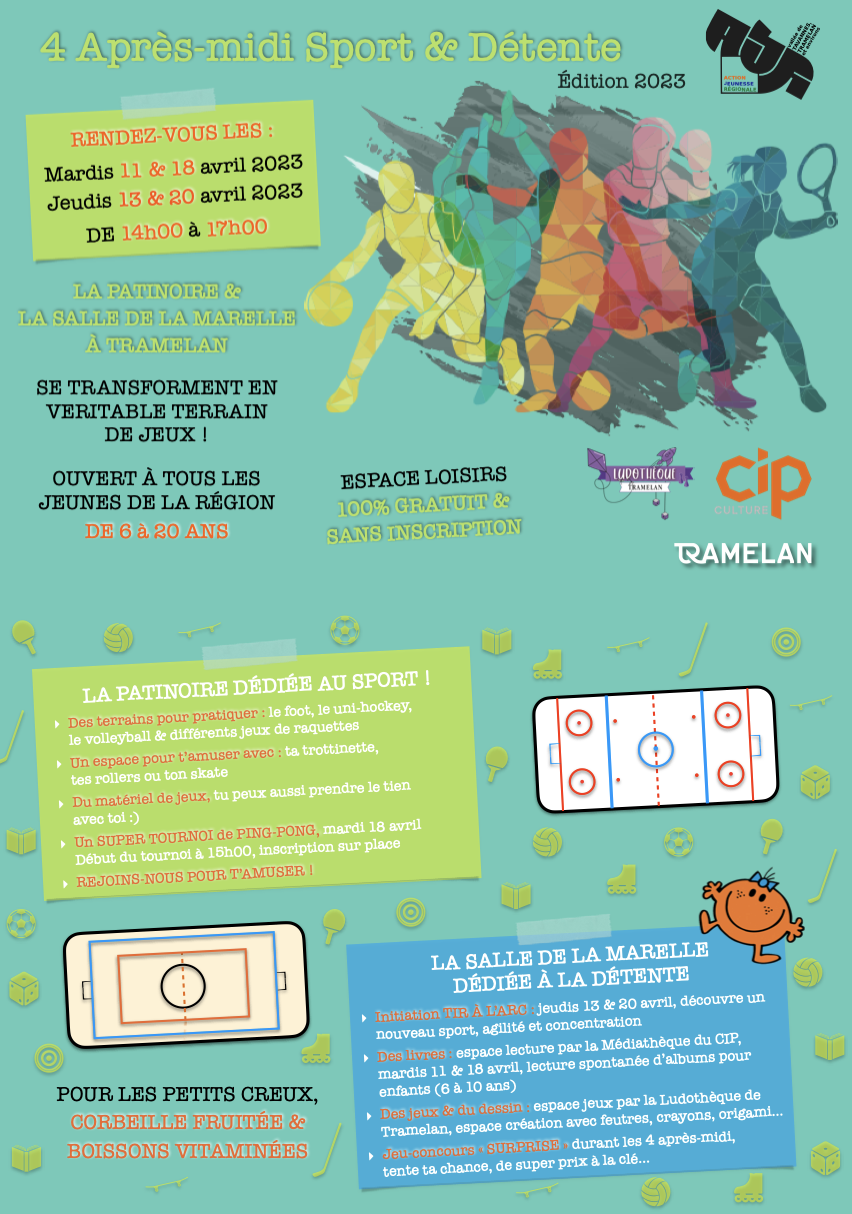 Pour cette dernière date saison 2023,l'Action Jeunesse Régionale proposera aux jeunes de 6 ans à 20 ans des activités et des animations ludiques, sportives et artistiques les mercredis après-midi.