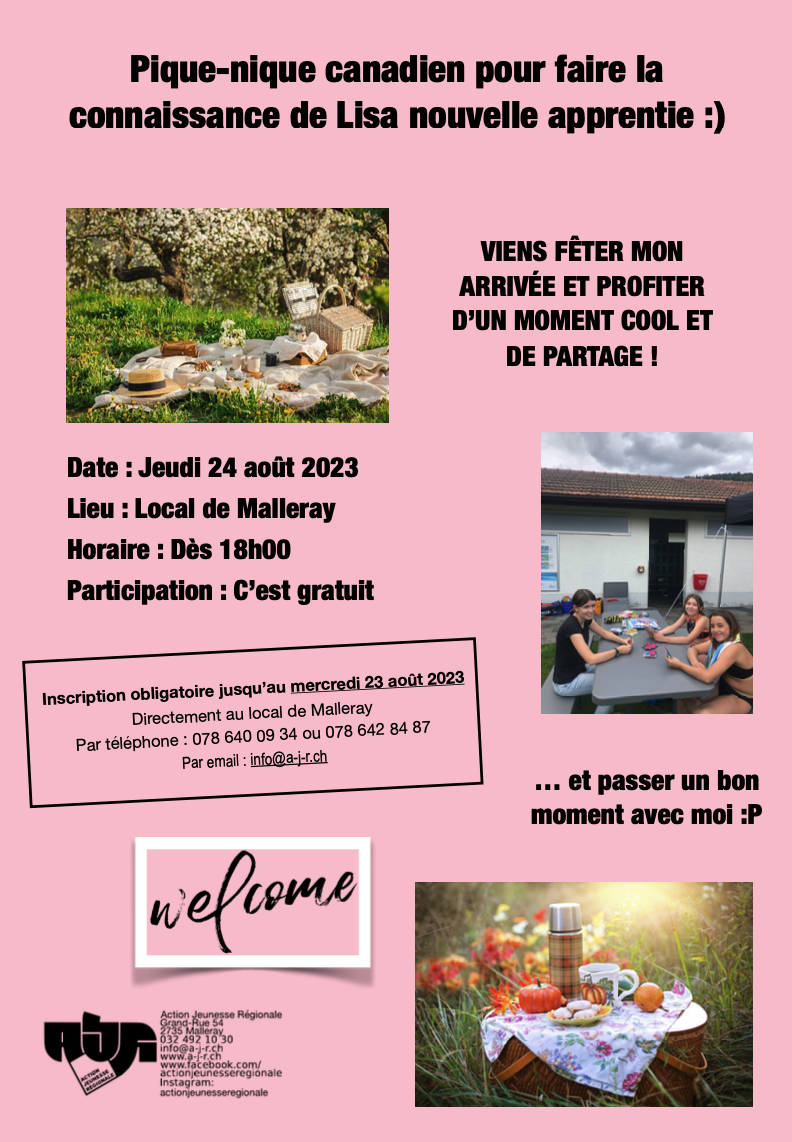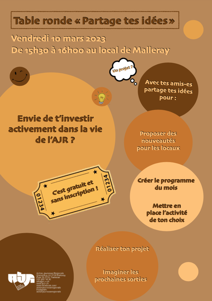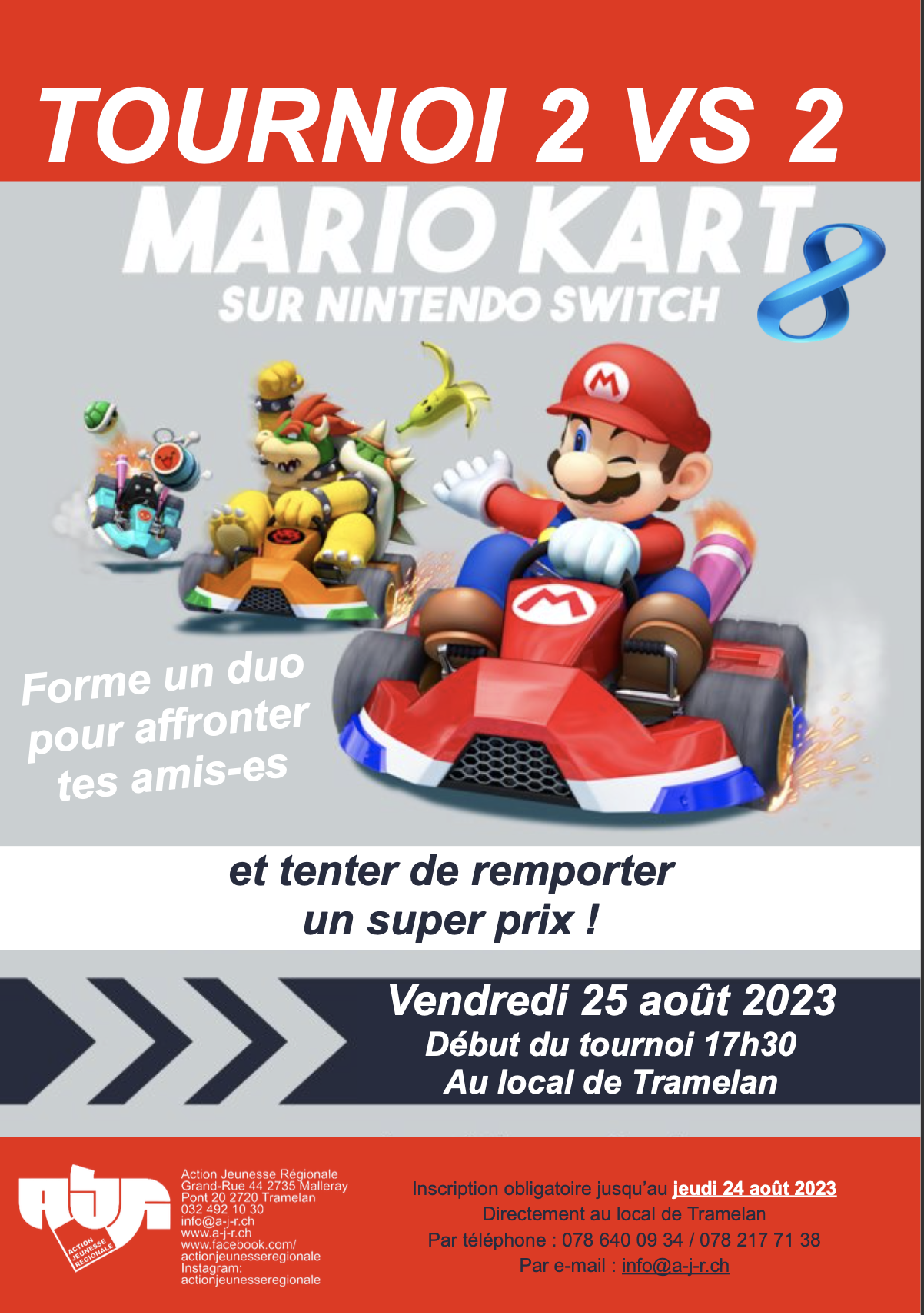 Le formulaire d'inscription ainsi que les CHF 50.- de participation sont à retourner entre le mardi 26 septembre et le vendredi 6 octobre 2023 dans les locaux de l'AJR (Grand-Rue 44, 2735 Malleray ou Rue du Pont 20, 2720 Tramelan).