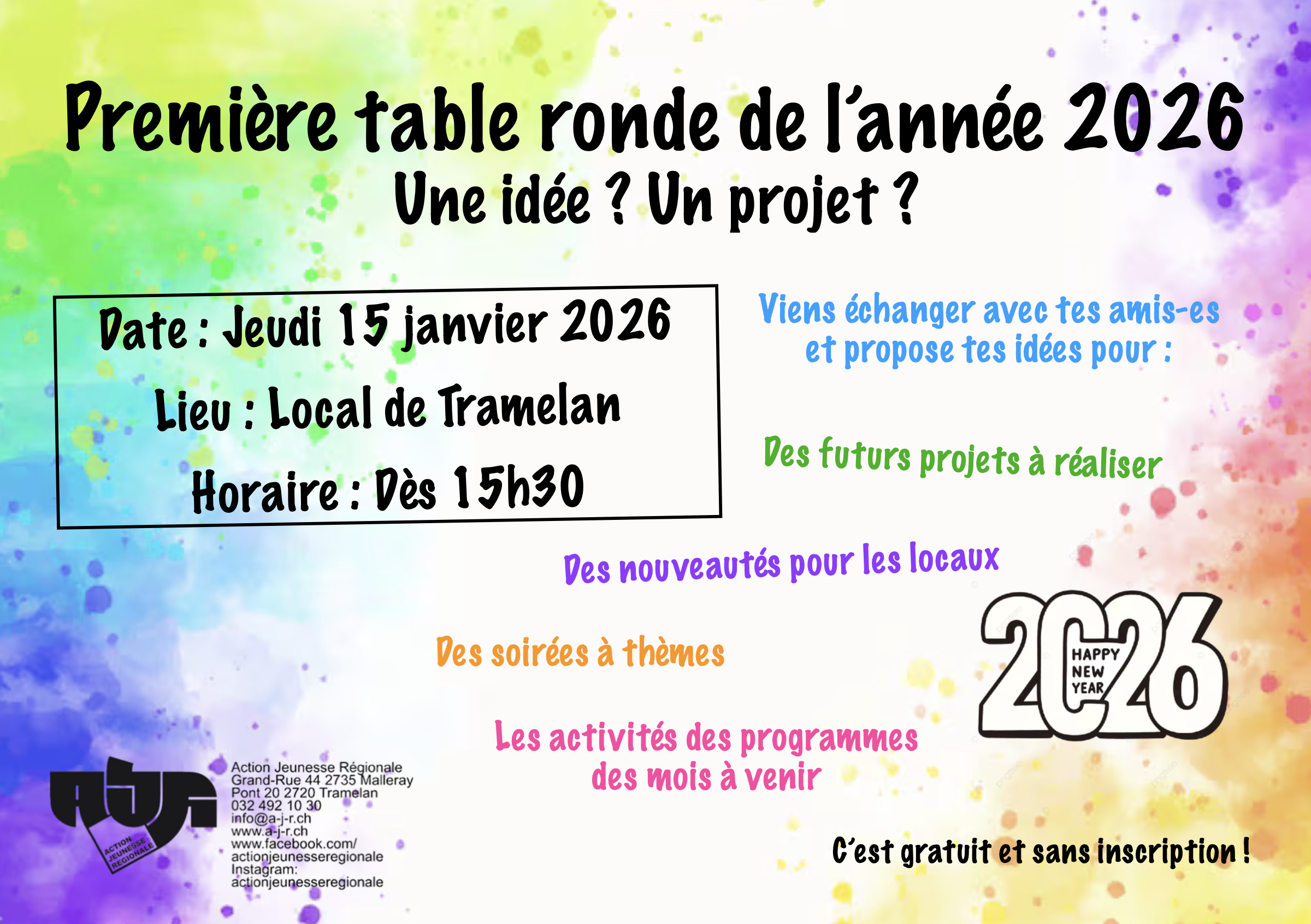 L’Action Jeunesse Régionale (AJR), basée à Tramelan et active dans l’ensemble de la vallée de Tavannes et sa région,